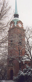 seiner barockisierenden Haube mit aufgesetzter spitzer Laterne.